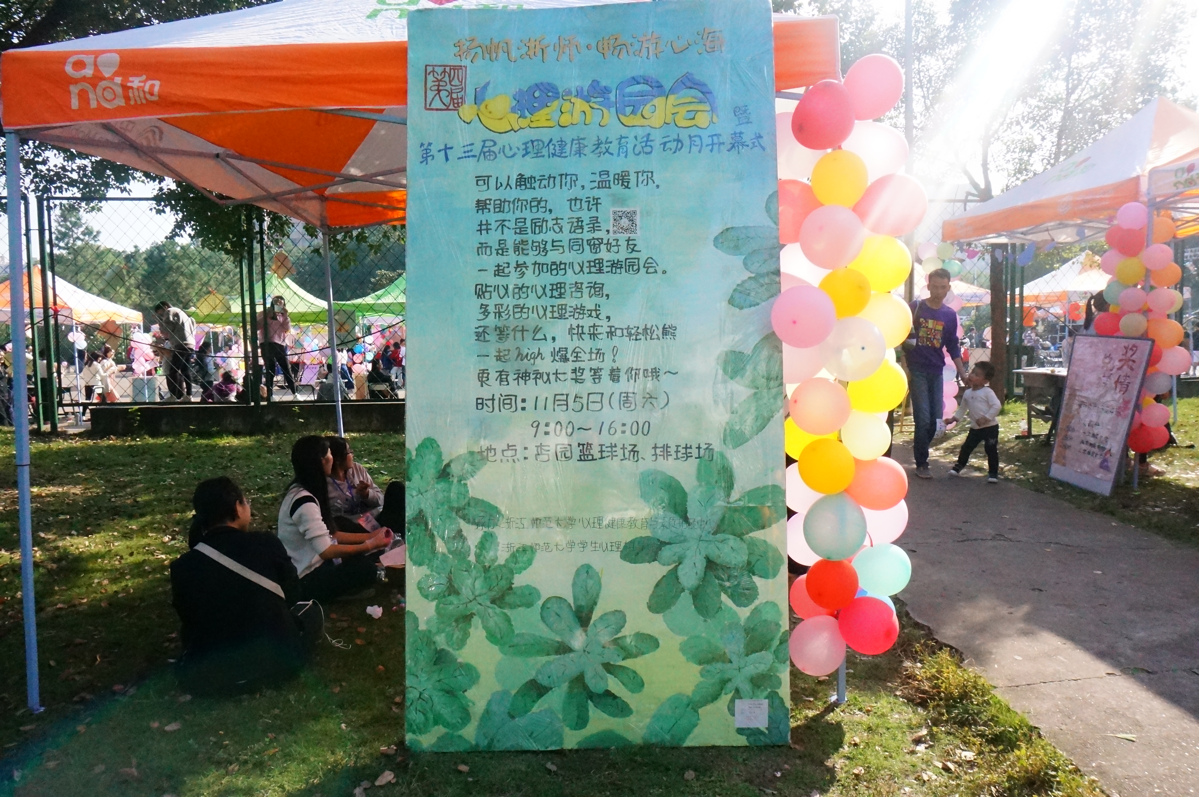 11月5日,杏园篮球场与排球场上满溢的热情感染了整个校园,由我校心理辅导站主办的第十三届心理健康教育活动月开幕式暨第四届“扬帆浙师,畅游心海”心理游园会于此顺利举行。