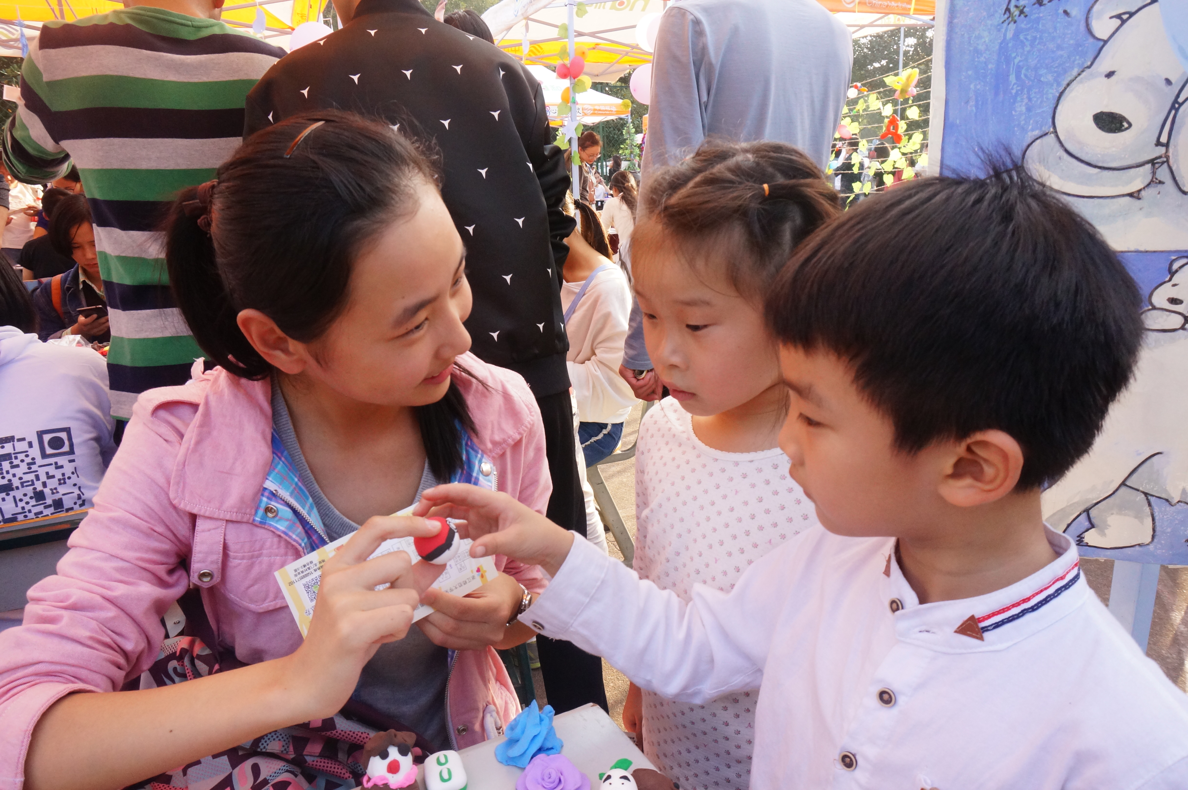 我院心理部筹备了“我心我塑”和“翻天覆地”两个既有趣又富有意义的活动。“我心我塑”活动中,参与者们发挥想象力,在十五分钟之内合作用轻质黏土捏出心中所想,并由工作人员进行评分。在团队丰富的想象力和动手能力的协作下,一个个精致的黏土作品诞生了。一些教职工老师也纷纷带着子女参与其中,在动手中拉近亲子距离。