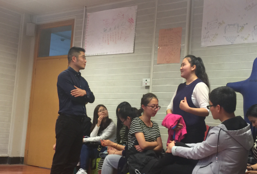 暖身游戏过后,陈老师将同学们分组,讨论自己在浙师大最开心或最幸福的事情。通过短暂的讨论交流之后,每位小组派出一位同学分享自己的感受。来自新疆的布马热木同学说最令她感到幸福的事是2016年圣诞节班级聚会,因为考虑到她是新疆同学,班委把聚餐地点定在清真餐厅,这让她觉得自己也是班级中不可缺少的一份子。