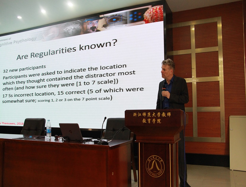 2018年4月25日,荷兰皇家科学院院士Jan Theeuwes 教授在17幢报告厅为我校师生带来一场题为“Statistical learning drives visual selection”的精彩讲座。Theeuwes教授是国际注意和记忆研究领域的顶级科学家,阿姆斯特丹自由大学实验与应用心理学系系主任,阿姆斯特丹脑与行为研究中心主任,欧洲认知心理学会(the European Society for Cognitive Psychology)主席。发表的学术论文被广泛引用,Google Scholar的H-index达72。