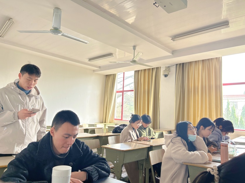 黄银向全体党员作了2022年支部工作总结:一是强化基层基础建设,规定动作不走样。支部按期召开发展大会、转正大会,严格规范发展流程各项要求。二是建立学习矩阵,强化理论学习。以“三会一课”为基本形式,辅以主题党日等活动,把学习党的二十大精神为首要内容,策划了二十大报告及党章学习讨论、二十大代表风采视频观看、重温入党誓词、党史知识问答等学习内容,引导广大党员做到学习跟进、认识跟进、行动跟进。三是牢记服务初心责任,发挥先锋模范作用。支部每周都会开展党员先锋岗活动,成员参与度高,积极性强。此外,还有支部党员利用课余时间进行心理援助服务,发扬专业力量。