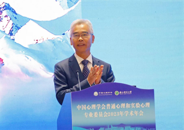 中国心理学会现任理事长赵国祥教授为大会致辞。赵国祥教授对本次普通心理和实验心理专业委员会在浙江师范大学召开表示热烈祝贺,指出心理学的发展要使用科技的手段进行创新、创造;在实验研究的道路上坚持问题导向,将心理学与国家和社会高质量发展的需求相结合,解决社会最紧迫最亟需的问题。
