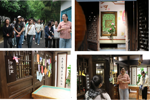 韩秋玲老师带领师生参观了九峰职业学校“耘之慧”教科研心理辅导工作室。工作室建筑古色古香,内设各个功能活动室,半封闭的心理辅导区,沙盘室和发泄屋,还有学生许愿墙。墙上挂着的瓶罐、纸条和明信片是职校学生写下的对未来的畅想和给自己或朋友的信,还特别开设了”幸运上上签“区域供一部分不善言辞的学生通过抽签表达心里话。古朴、雅致、尊重、安全的心理辅导室是学生们的心灵补给站和温馨心家园。