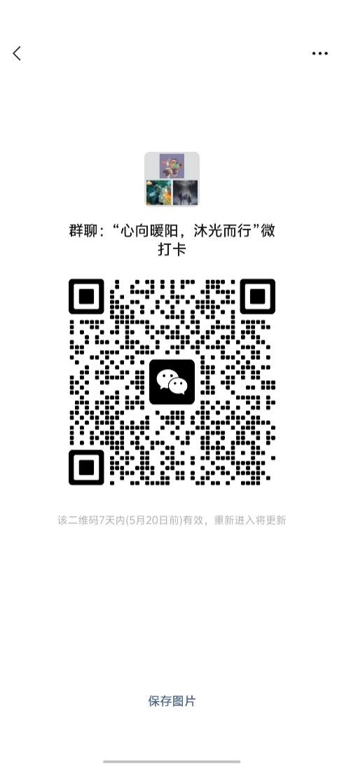 (1)参与者以个人为单位,加入“心向暖阳,沐光而行”微打卡微信群。在群内通过视频、文字、图片、手账、海报等方式分享自己生活中发现的各类小确幸,内容可以是生活中的小细节、友情、爱情、亲情等各种感人故事。