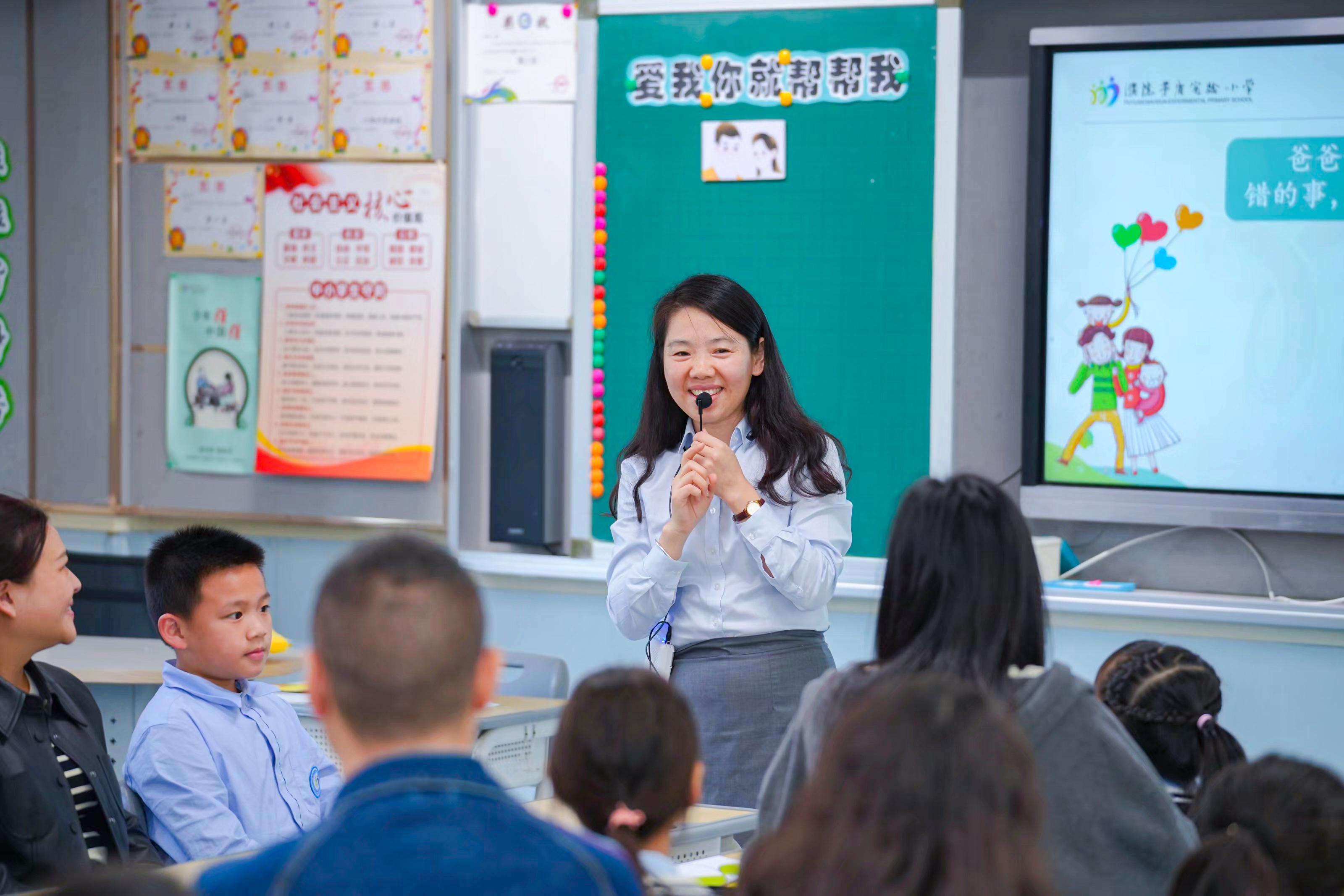 随后,小学组平行分论坛进行校家社协同育人现场展示会。桐乡市濮院茅盾实验小学开设12节亲子沟通班会课,主题分为《爱我,你就夸夸我》和《爱我,你就帮帮我》,由陆思毓、周春梅、朱文洁、陈曦、朱滢燚、陈春梅、陆笑燕、陈晨霞、朱雯芳、刘韵清、杨婷艺和郎杰12位教师展示。