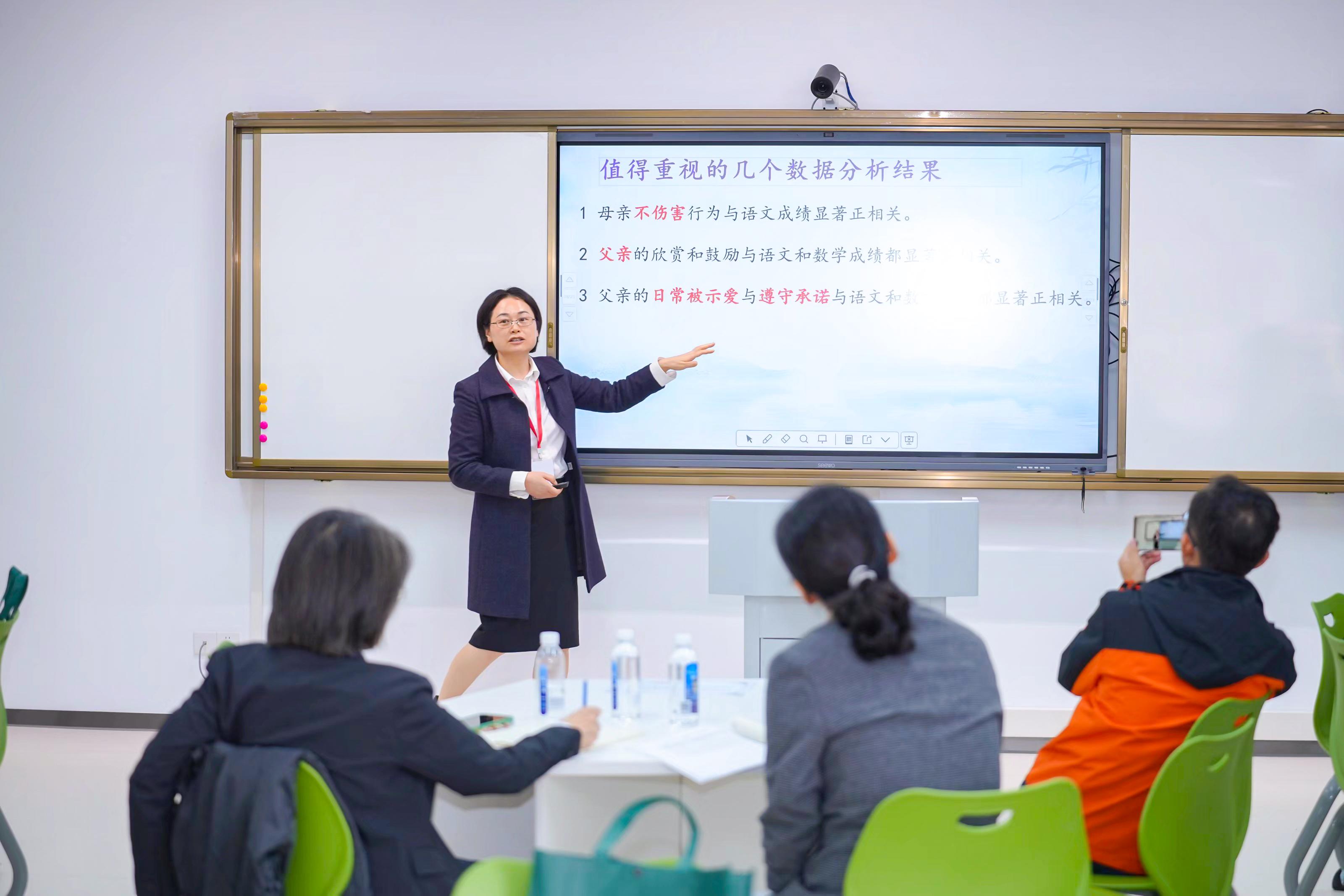 最后,小学组会场开展了实践分论坛报告与交流,由中国科学院心理研究所李甦教授主持。杭州市临平区教育发展研究学院教研员蔡迎春作《校家协同育人:亲子沟通班会课的开发与区域推进》报告、嘉兴南湖实验学校教育集团总校长王建良作《一份家委工作计划背后的故事》报告、海南三亚第九小学德育处长廖树结作《心合意同:全员育人下的家校共融路径探索》报告、浦江县教育局副局长徐双莲作《心路e通:基于“主动健康”的学生全域心理服务体系》报告、桐乡翔云小学校长彭海鹰作《四“慧”行动:开启农村小学校家社共育新样态》报告、丽水市秀山小学副校长兰春红作《分层协同:构建校家社共育新路径的“秀山模式”》报告、景宁畲族自治教育局副局长吴月圆作《从“被动应战”到“主动出击”——景宁县“家长学校”聚焦“公共服务一体化”》报告。