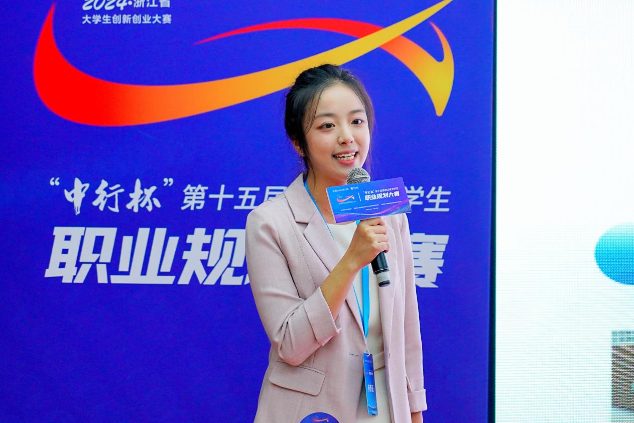 王维苑同学通过对政策和行业痛点的分析,将初中心理教师作为自己的职业目标,立志做深做优心理健康工作,依托永利23411集团学科优势平台,王维苑坚定了用所学心理学知识服务家乡心理健康教育事业的初心。在现场展示环节,王维苑凭借出色稳定的现场发挥,顺利斩获浙江省第十五届职业规划大赛就业赛道高教本科生组金奖。