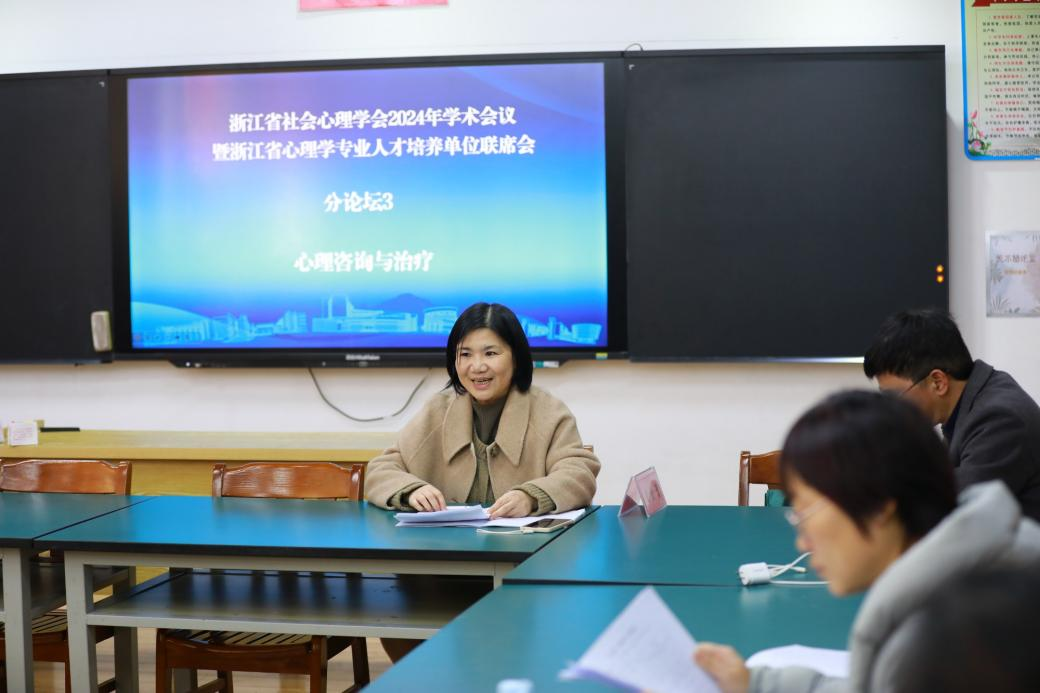1月4日下午,大会设置了四个学会理事学术交流分论坛展开交流。徐琴美、陈莉、史金芳和胡瑜分别担任四个分论坛“社会心理服务体系与心理学人才培养”、“社会心理基础与应用研究”、“心理咨询与治疗”和“儿童青少年心理发展”的召集人,来自浙江大学、浙江师范大学、杭州师范大学、宁波大学、温州大学、温州医科大学、湖州师范学院、金华职业技术学院等高校以及台州教育科学与监测研究院等单位近50个报告深入探讨了人才培养、社会服务等方面的多个关键议题。