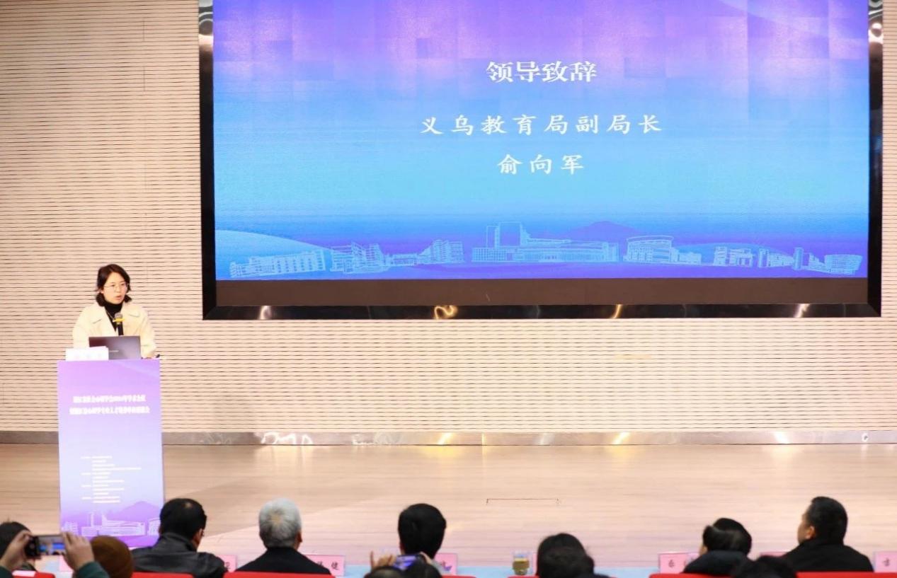俞向军代表义乌市教育局感谢浙江省社会心理学会和永利23411集团对义乌教育工作的支持,并介绍了义乌以“阳光义心”为代表的心理健康工作品牌及多样化心理服务,同时表达了对未来心理健康教育工作的期望。