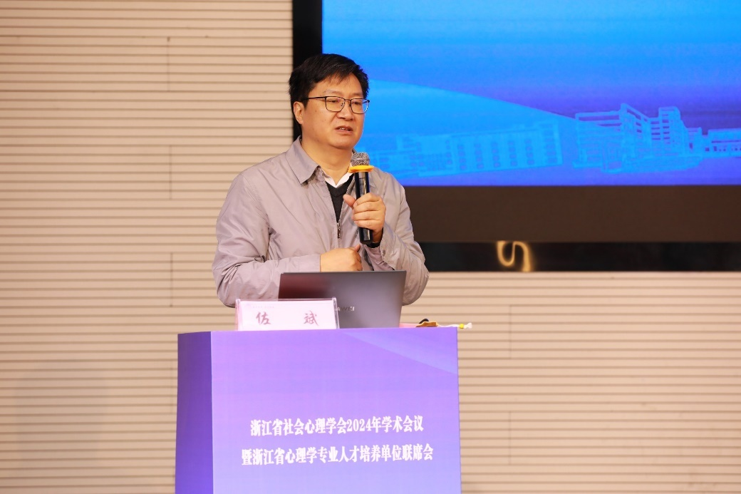 佐斌代表中国社会心理学会致辞,充分肯定浙江省社会心理学会的出色工作。他强调高校、政府和社会需支持和帮助培养兼具理论和实践能力的专业人才,以推动社会心理服务体系的建设,促进个体心理健康和社会适应,维护社会和谐稳定及国家的长远发展。