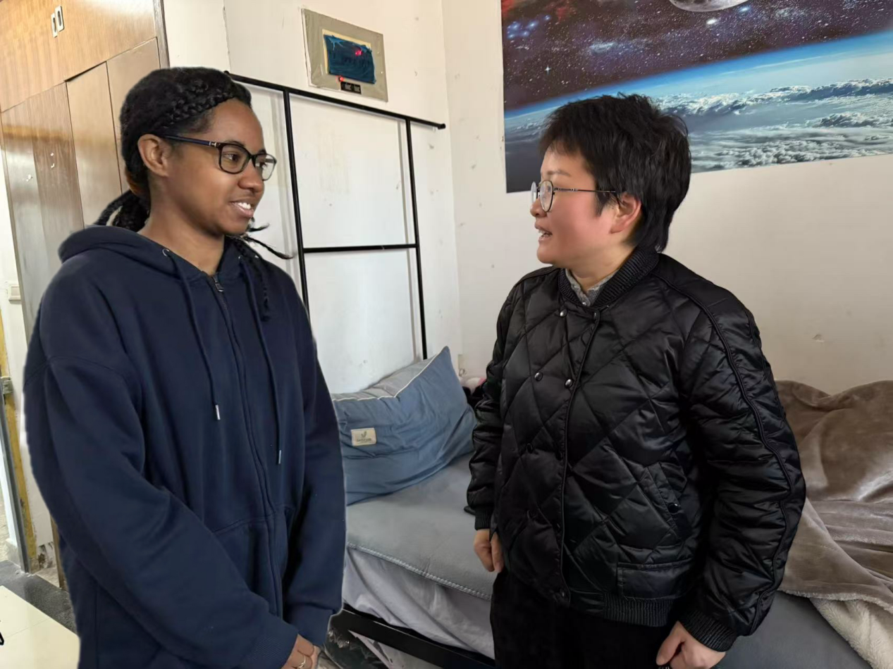 在与圭亚那留学生李慧的交谈中,马莉书记详细了解她在专业学习上的困惑,关心她的在校生活,并鼓励她春节期间多参与学校组织的各项活动,丰富自己的留校生活,深入体验中国新年的独特韵味与魅力。此次慰问活动不仅让留校学生深切感受到了学院的关怀与温暖,更增强了他们的归属感与幸福感。相信在新的一年里,同学们将怀揣着更加饱满的热情与坚定的信念,全身心投入到学习与科研中。