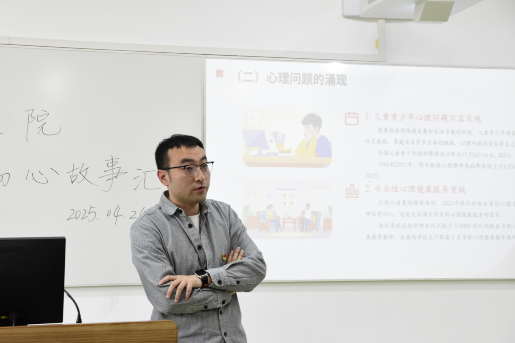 谈及新时代教育工作者的责任,高崚峰老师结合心理学专业特点指出,要紧跟时代步伐,推动心理学与人工智能等前沿技术的融合创新。面对当前青少年心理健康问题突出、专业服务紧缺的现状,他强调教育工作者应致力于培养全面发展的人才,注重塑造学生的时代担当精神,为心理健康教育事业贡献力量。