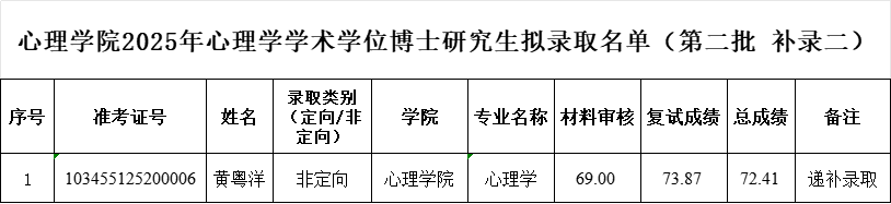 永利234112025年心理学学术学位博士研究生拟录取名单(第二批 补录二)