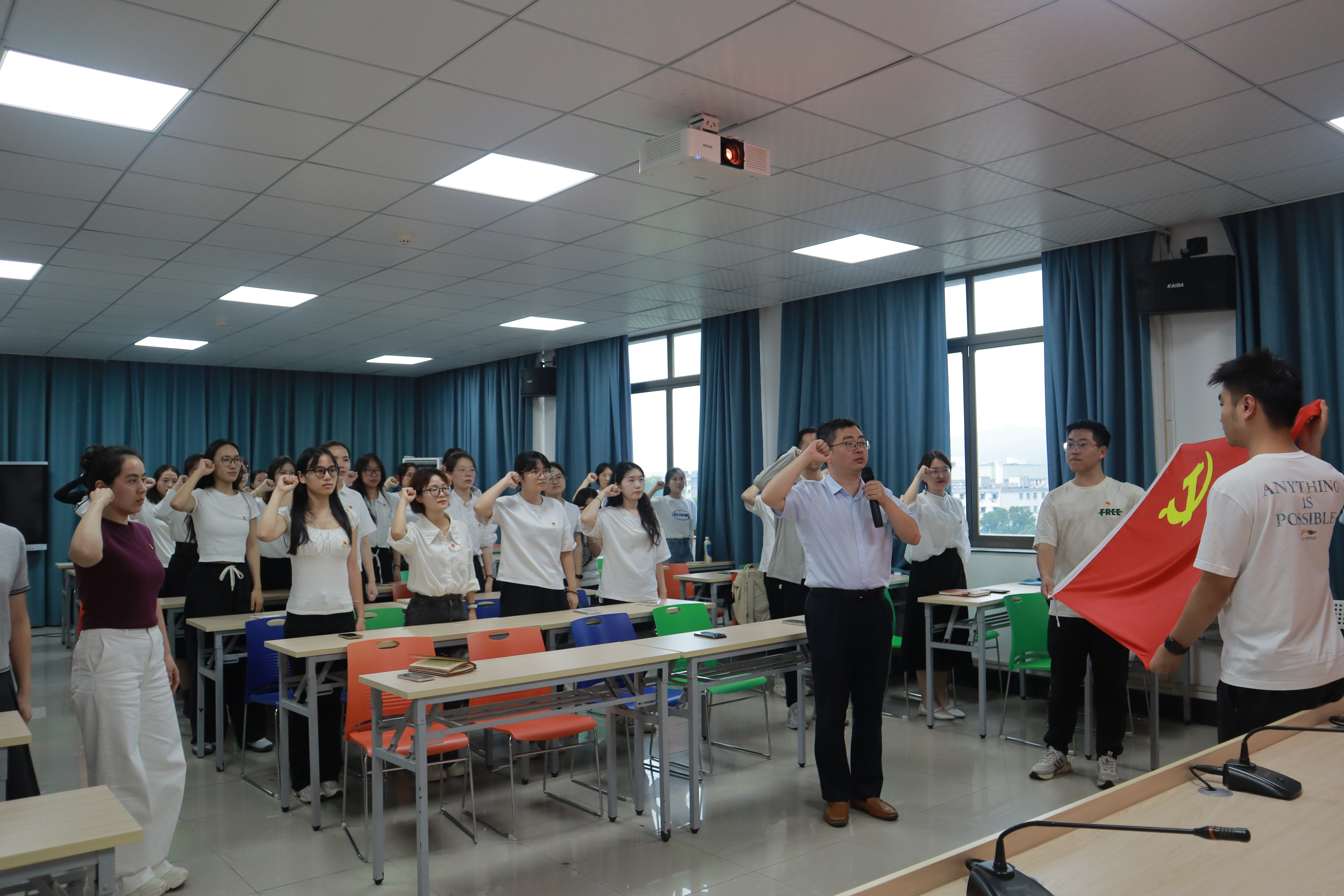 6月26日,在中国共产党成立104周年之际,为深入学习贯彻习近平新时代中国特色社会主义思想,进一步增强党组织的凝聚力和战斗力,激发党员的责任感与使命感,永利23411于17幢718会议室举行“七一”表彰大会暨新发展党员宣誓仪式。永利23411党委书记马莉、纪委书记、副院长贾磊、团委书记兼学工办主任喻松、辅导员萨依甫加马丽·依马木、董俐伶、于心月、学生党支部支委、受表彰对象及新发展党员参会。