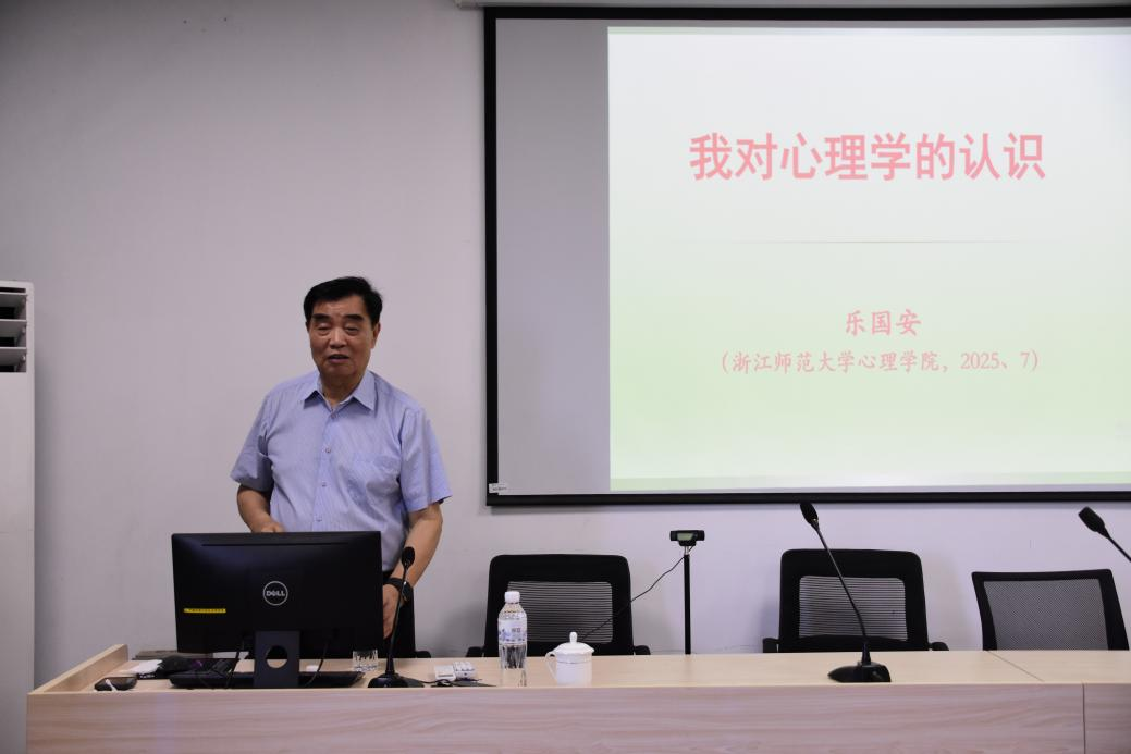 中国心理学会、中国社会心理学会前任理事长,浙江师范大学资深教授乐国安带来了题为《我对心理学的认识》的主旨报告。乐国安教授结合自身丰富的学术经历,分享了自己对心理学的深刻见解。他认为心理学是一门高深且大众的学问,既探讨人的心理本质,又触及日常生活的方方面面。在如何学习和研究心理学方面,乐国安教授鼓励同学们保持好奇心,勇于探索未知,同时注重跨学科融合,以科学的方法论指导研究,推动心理学不断向前发展。