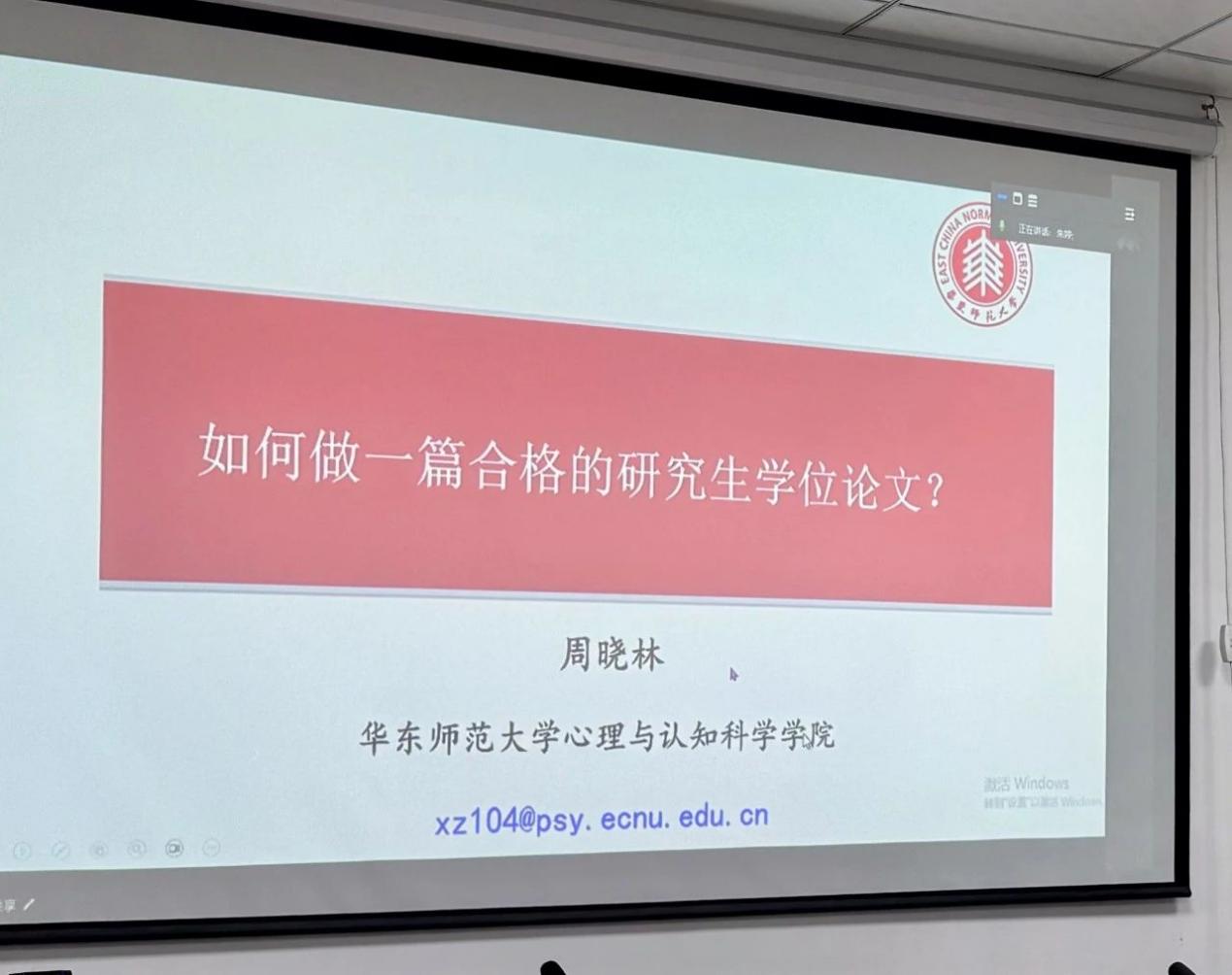 闭幕式上,中国心理学会前任理事长、教育部长江学者、浙江师范大学双聘教授、浙江师范大学心理与脑科学研究院院长周晓林作了《如何做一篇合格的研究生学位论文》报告。他从选题创新、方法规范、论证严谨等维度,系统阐释了高质量学术研究的要求,强调研究生培养需有端正学术动机、恰当选题方向、扎实知识储备、规范研究方法与严谨逻辑思维,并勉励同学们做好长期奋斗准备,以持续积累推动中国心理学学科发展。