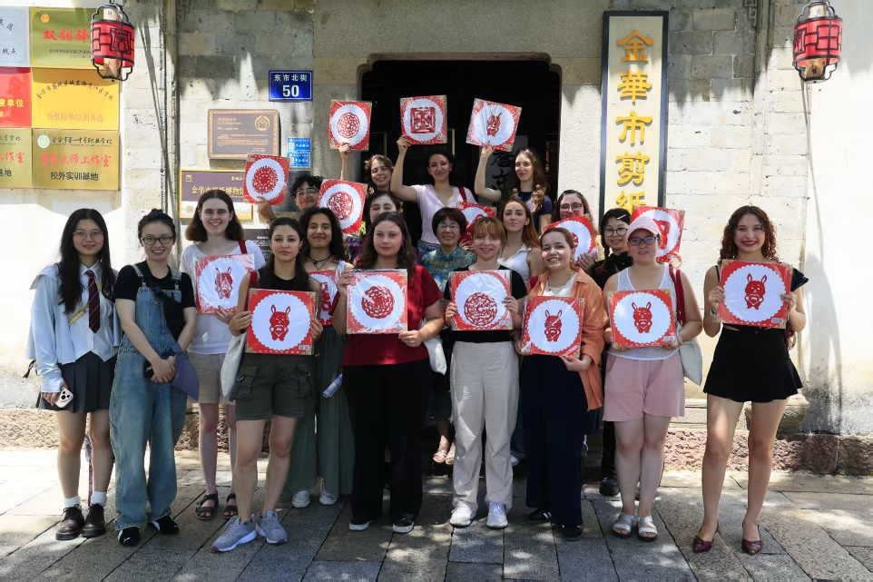 文化体验也是本次夏令营的重要组成部分,通过一系列精心设计的活动,留学生们全方位感受了中国文化的独特魅力与深厚底蕴。书法课上,留学生在老师的指导下,从一笔一划中感受汉字的结构之美与文化内涵;剪纸活动中,他们亲手体验传统手工艺,专注的剪裁不仅锻炼了专注力,也让他们感受到了中国传统文化的精妙。电影《哪吒之魔童降世》的观影活动则从心理学角度重新审视了中国文化中的经典故事,引发了留学生的热烈讨论。
