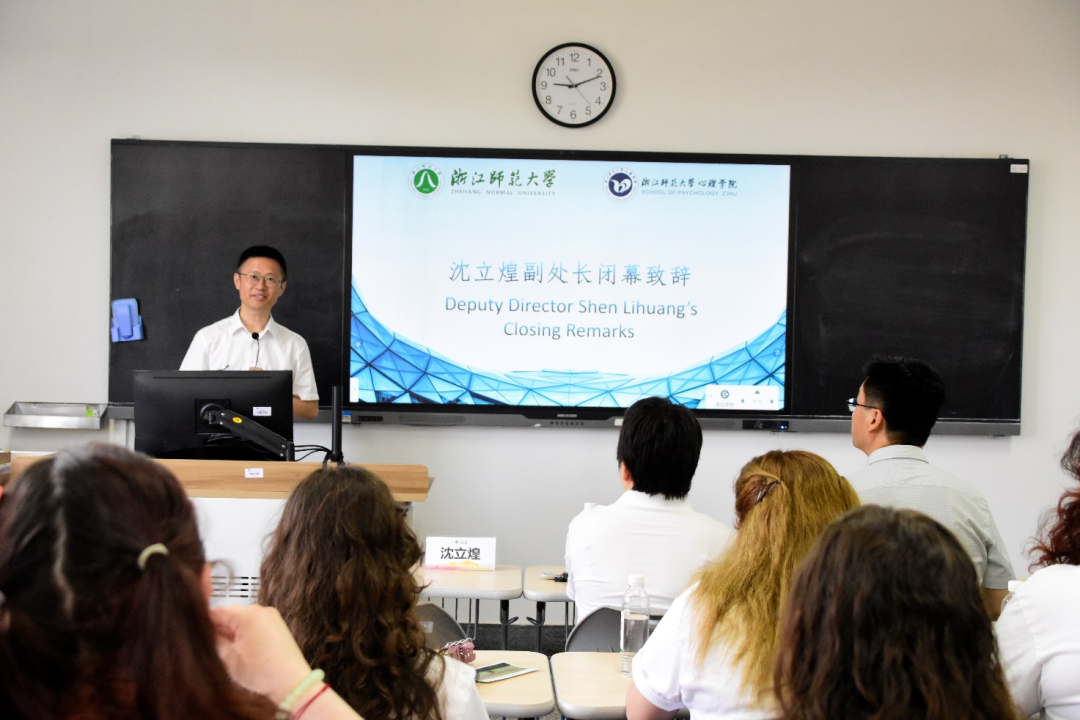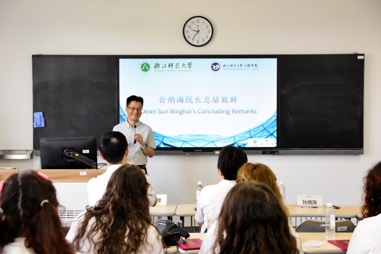孙炳海院长在总结讲话中提到,本次夏令营的旅程以文化为镜,照见心灵本真,希望留学生们带着西湖的包容和金华的勇气启程,回到自己的国家后继续传播心理学知识,搭建世界的心理之桥。