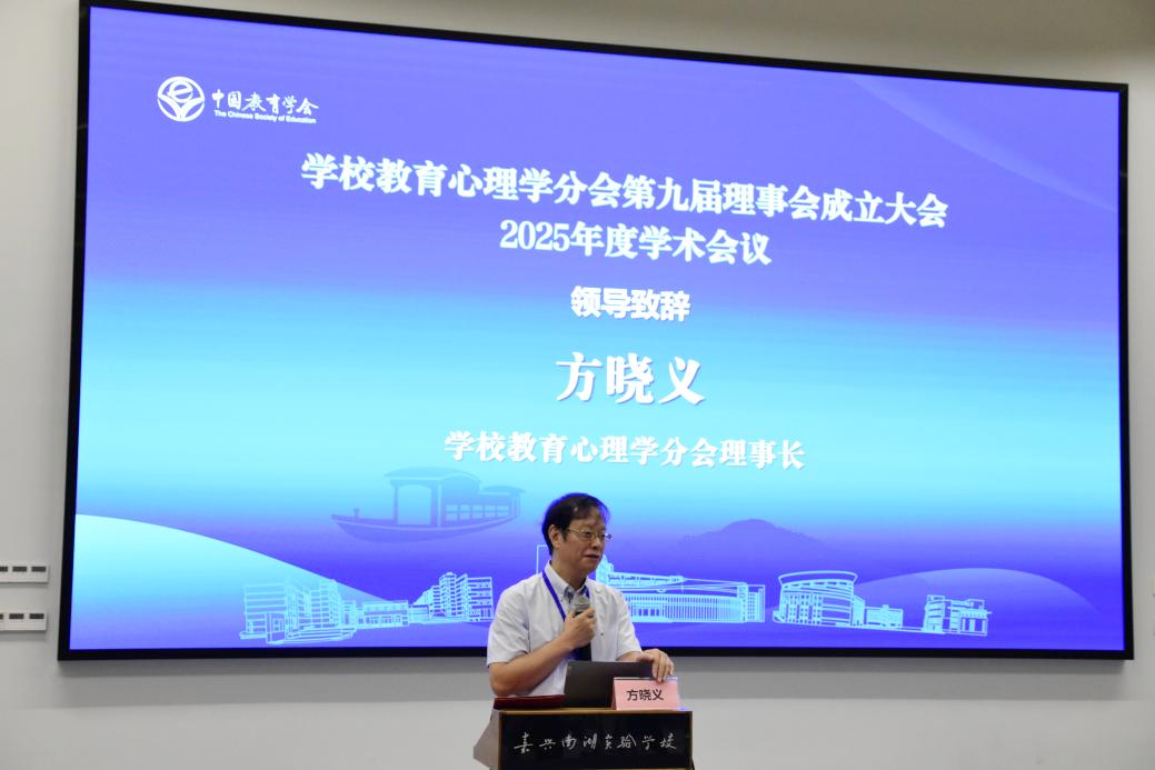 方晓义理事长向会议承办方与支持单位表示感谢,指出本届年会聚焦“构建校家社协同机制,深化学生心理健康教育”,强调将关注对象从学生延伸至教师与家长,通过三方协同共同促进学生心理健康。