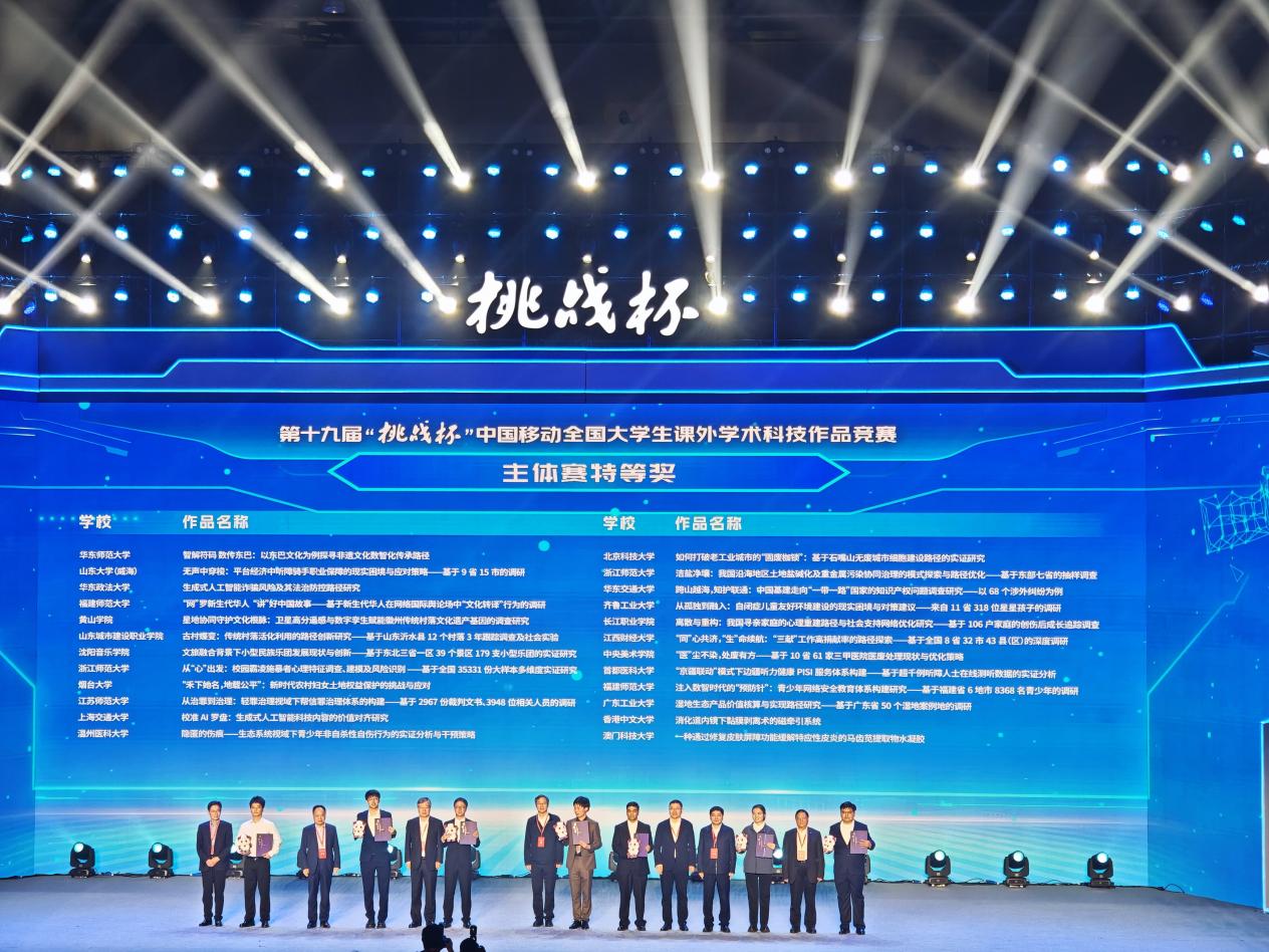 10月31日—11月3日,第十九届“挑战杯”中国移动全国大学生课外学术科技作品竞赛在南京大学举行,我院应用心理学231班窦苑星团队的项目《从“心”出发:校园霸凌施暴者心理特征调查、建模及风险识别——基于全国35331份大样本多维度实证研究》与全国顶尖高校学子同台角逐,凭借扎实的调研基础和出色的现场表现脱颖而出,喜获特等奖,刷新学院学科竞赛历史纪录,同时也追平了我校在本赛事的历史最好成绩。