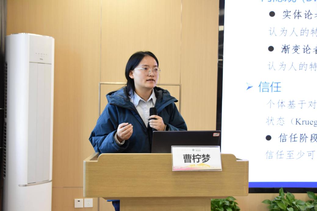 曹柠梦博士以《信任的“可变性”:内隐观在个体信任过程中的作用》为题,聚焦人际信任的动态机制。她通过一系列行为与脑电实验,深入探讨了个体对信任所持的内隐观念——即认为信任是固定不变还是可发展的——如何影响信任的建立、违背与修复过程。研究显示,持有“信任渐变观”的个体在信任受损后表现出更强的修复弹性,这与他们的认知加工和归因模式密切相关。该研究为理解与管理现实人际信任提供了重要启示。