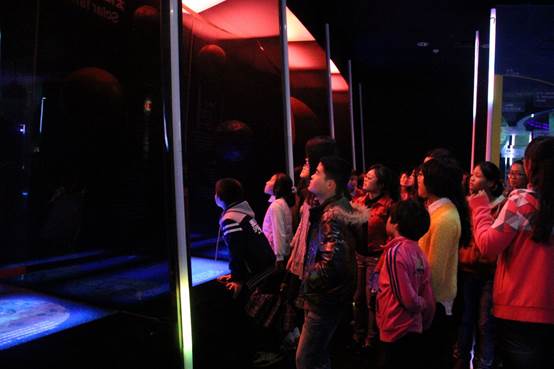 团辅课程结束后,孩子们在实践队员和义工们的陪伴下前往浙师大科技馆进行参观,科技馆工作人员热情地欢迎了孩子们并作为讲解员随行。在科技馆新奇有趣的各个展区内,孩子们或为太阳系的绚丽宏伟兴奋,或为鲜活的动物标本惊呼,在可以亲身参与感受科技的互动展区中更是玩得十分开心。面对着师大种种令人惊喜的事物,好几名孩子都拉着结对队员的手,欣喜地诉说着对大学、对未来的向往,在队员们的鼓励下立下了小而坚定的心愿。
