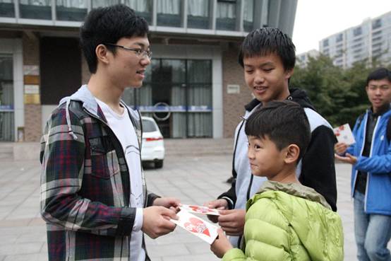 在永康市阳光爱心义工协会和我院实践队的联系和组织下,参加我院实践队今年暑期举办的“向阳夏令营”的孩子们在10月31日上午来到了浙师大,进行“向阳花朵师大行”活动,和曾经共同学习生活的老师在浙师大的校园里重聚。