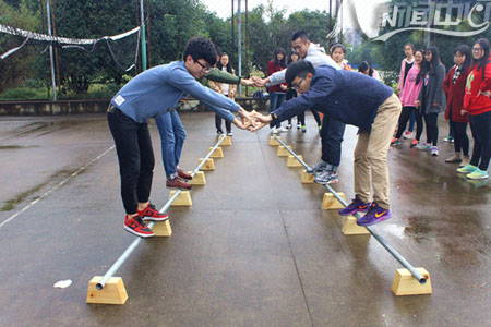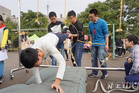 在“相依为命”处,参与者要面对面站在平衡杆的两端,双手相对相互支撑,从窄的一端移动到宽的一端。不少人在“初体验”时,往往不到终点就落地了。 生化学院的王烨和室友在一次成功尝试后顺利通过了游戏,谈及成功的诀窍,她笑着说:“信任对方,相互支撑,步伐一致,就能挪到终点。” 与往年相比,本届心理游园会新增了10余项团队类心理小游戏。校学生心理辅导站的负责人认为,团队类游戏要求同学间相互协作,有利于提高相互间默契度,增强对彼此间的信任;同时,也能让同学们走出寝室、结伴出行,感受多彩的校园文化。 据悉,本次心理游园会以“师大梦,同窗情”为主题。游园会结束后,第12届心理健康教育活动月正式拉开帷幕,校学生心理辅导站及各学院分站还将开展“亲室友?爱邻居”寝室长培训、十佳心理委员风采大赛、和谐寝室PK赛等活动。 | ||