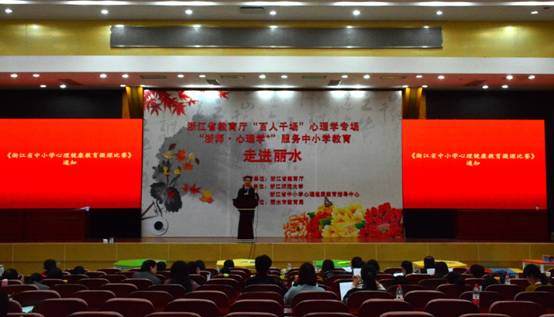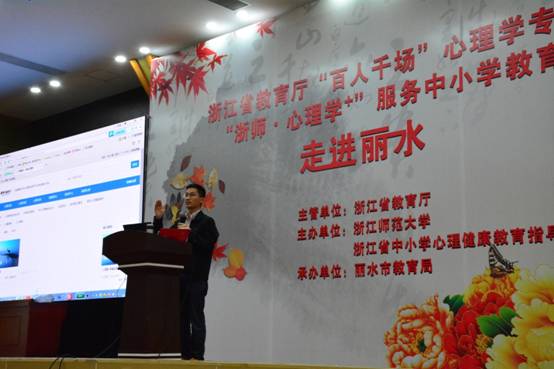 2016年11月11日,浙江省教育厅“百人千场”心理学专场、浙师·心理学+服务中小学教育走进丽水名师送教活动在丽水市职业高级中学正式开幕。“百人千场”名师送教活动是由浙江省教育厅主管的公益送教活动,本次活动由浙江师范大学、浙江省心理健康教育指导中心主办,丽水市教育局承办,是我省首次心理学专场送教活动。出席本次活动的领导有:浙江师范大学副校长李伟健教授、山东师范大学副校长张文新教授、浙江省教育科学研究院朱永祥院长、丽水市教育局副局长吴燕女士,以及浙江师范大学、省心理健康教育指导中心、丽水市教育局的各位领导。活动期间有300多位省内各地心理健康教育工作者、心理健康教研员、一线教师参加。