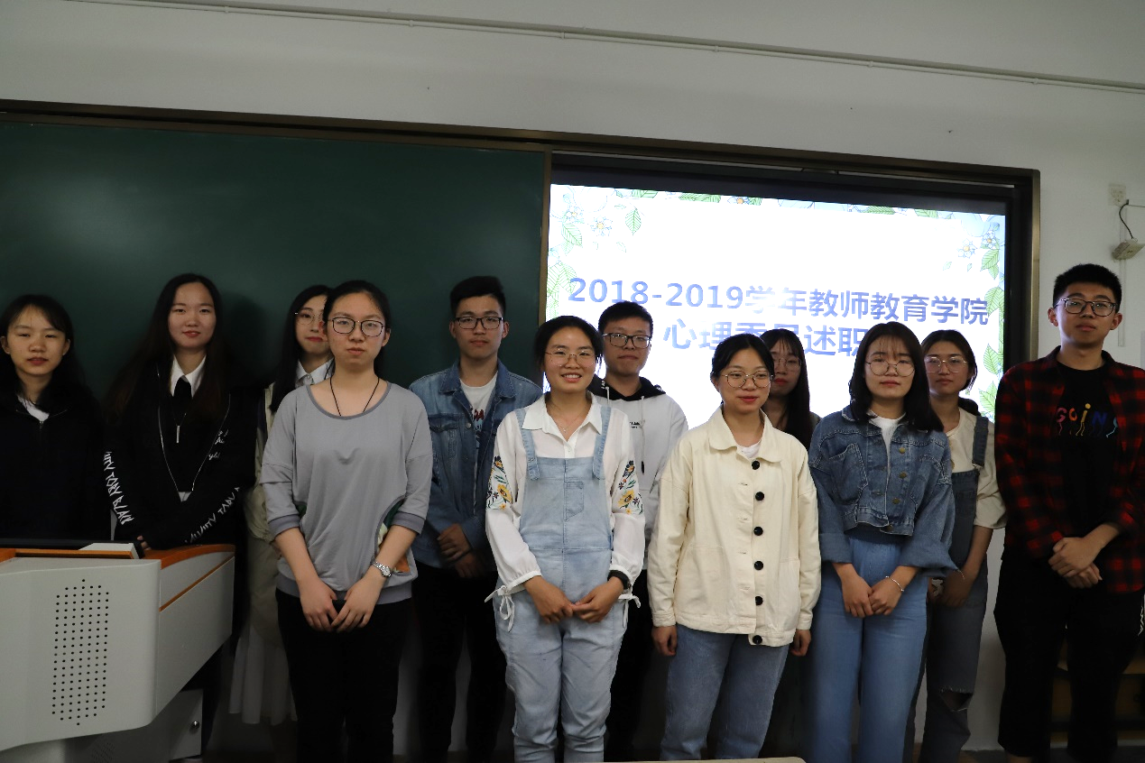 为表彰先进,树立典型,进一步激发各班级心理委员的工作热情,5月5日晚,教师教育学院2018-2019学年心理委员述职会于16幢104教室顺利举行。2017-2018学年院优秀朋辈辅导员陈袁哲、校心理辅导站副站长全彬逢,院学生会心理部部长方哲出席并担任述职会评委。