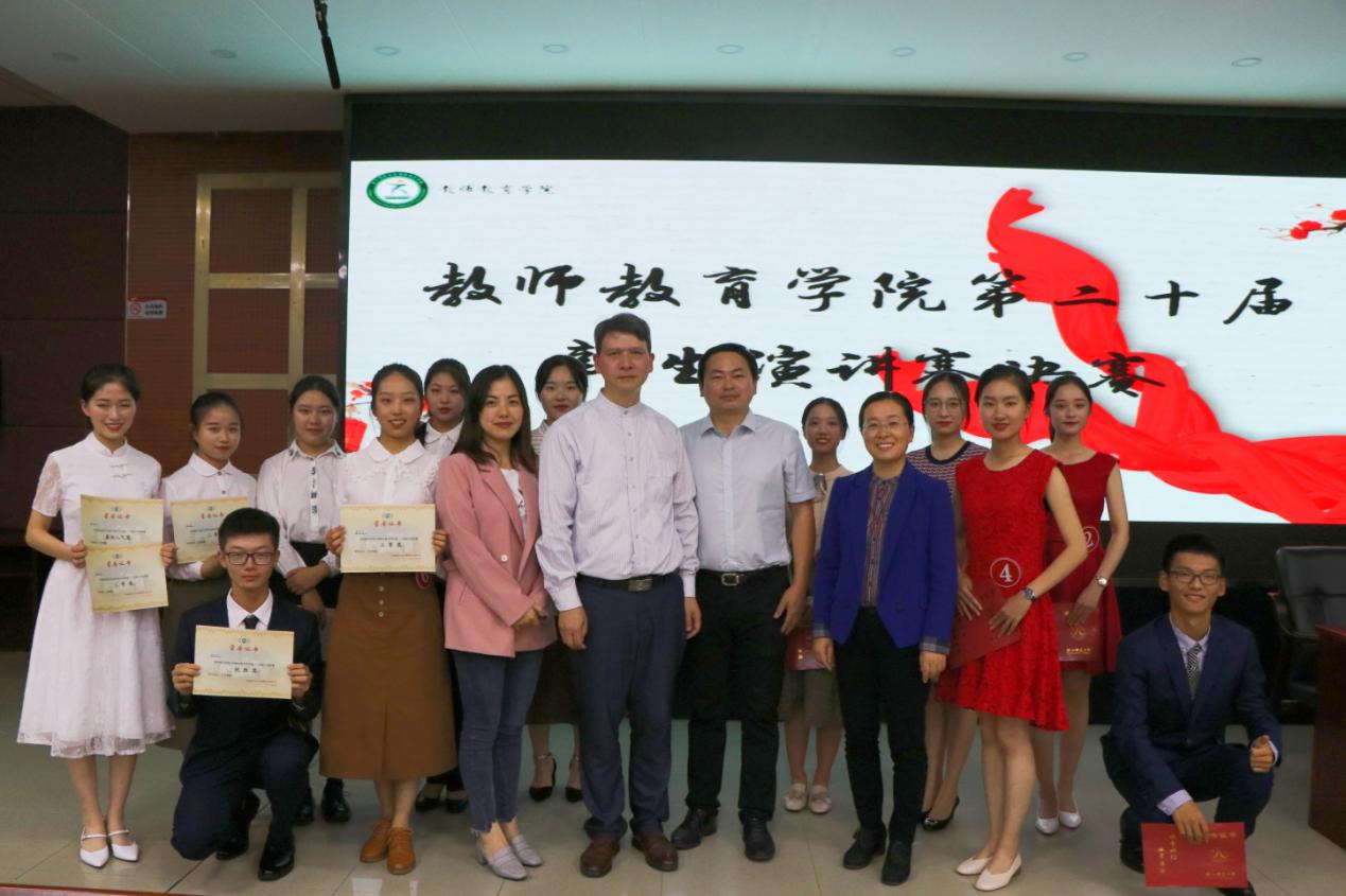 101818,教师教育学院第二十届新生演讲赛决赛于17112报告厅顺利举行。教育学院郑逸农教授校党委宣传部新闻中心副主任朱慧老师教育学院党委副书记狄伟锋老师、教育学院团委书记兼学工办主任叶青老师担任本次比赛的评委2019级新生辅导员蒋栩璐老师作为特邀嘉宾参加本次比赛