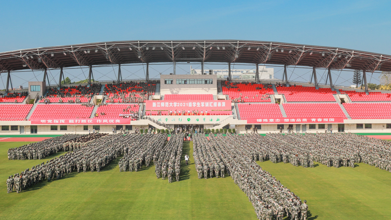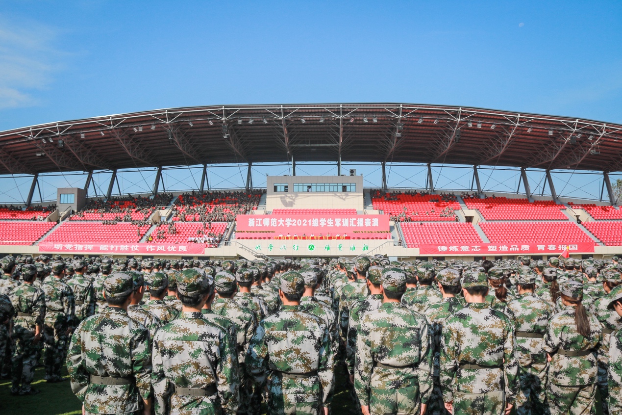 9月26日,浙江师范大学2021级新生军训汇报演出在东田体育场隆重举行。沙场秋点兵,威武展英姿,在为期两周的军训中,教师教育学院的学子们表现出色,在军训汇演中荣获“内务优秀奖”“先进单位”“优秀方阵”三面锦旗,为本次军训画上了一个圆满的句号。