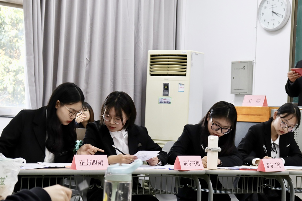语言的魅力让我们不得不为之称奇,而辩论的魅力在于让我们放弃成见。虔诚地从头开始学习一个辩题,形成一种思维方法,一种态度,让才华和灵感在语言的承载下迸发出不一样的光彩。3月13日下午,教师教育学院2021级新生辩论赛初赛在16幢举行。院辩论队副队长赵子越、院辩论队成员陈喆瑜等担任本次比赛评委。