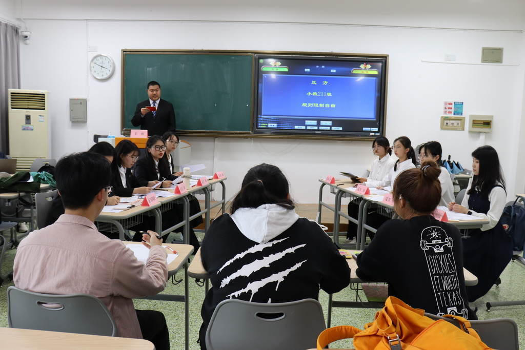 第二场辩论赛的辩题为“规则保障自由/限制自由”。双方辩友就对规则的定义、对自由的定义展开了一场语言上的博弈。正方认为,规则是人民共同认可的有效规章制度。正方辩手从规则的稳定性、渐进性论证了己方观点“规则保障自由”。而反方辩手对正方辩手“自由是在法律定义下的自由,而另一方面法律保障自由”这一观点发起了反击。双方利用语言的艺术碰撞出绚丽的思维火花。