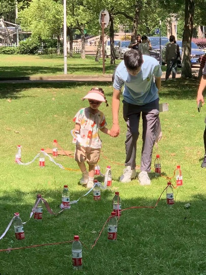 活动现场,大学生志愿者和家长一起鼓励小朋友大胆参与每个游戏。丰富的游戏把孩子们带进了欢乐模式,孩子们最喜欢“寻宝”游戏,找到宝藏后还意犹未尽。“小小引路人”游戏中,孩子充当向导,指挥家长前行,让孩子和家长在游戏中体验信任。
