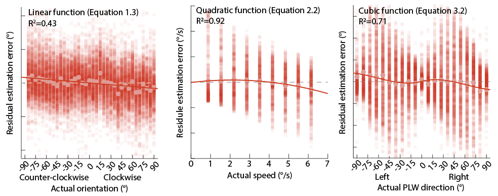内容简介:经过前人的研究和自己课题组一系列的研究都证实了序列依赖效应的存在。那么问题来了,我们整体误差和序列依赖效应的偏差之间存在什么关系。我们能否用序列依赖效应的偏差来预测整体误差?为了回答这个问题,我们分别对朝向刺激、速度感知、生物运动方向三类刺激做了系统的探究。结果发现,序列依赖效应的偏差可以解释超过20%,甚至90%的整体偏差。这似乎可以提示我们只要了之中一个,就可以去预测或解释另一个效应。对未来研究有一定的启示作用。