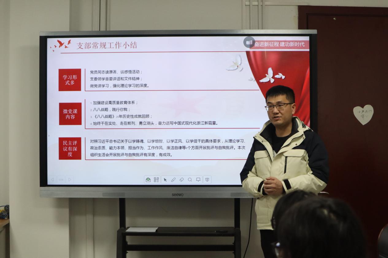 在听取汇报后,学院专职组织员黄永新老师指出,党建工作始终要围绕学科建设和学院发展这一中心开展,希望各支部更好发挥引领作用,坚持守正创新,推动理论教育的实际成效转化为推动发展的强大动力,为学院发展贡献智慧和力量各支部之间也要深化交流合作,加强党组织建设、提高党组织活力。