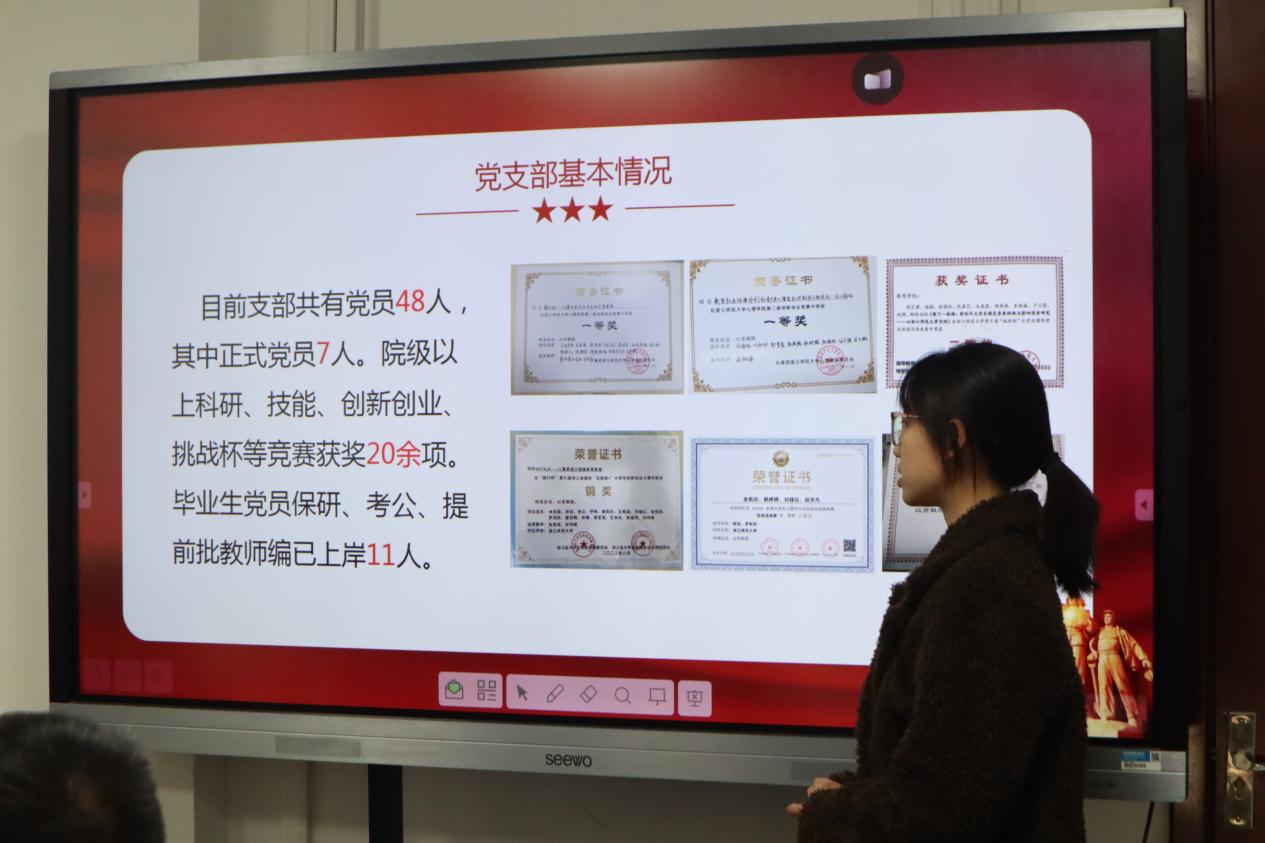 会上,2个教师党支部、5个学生党支部书记对支部过去一年的工作进行了全面梳理,回顾总结了本支部工作上取得的成效指出存在的问题,并提出接下来支部建设的工作思路和工作计划。