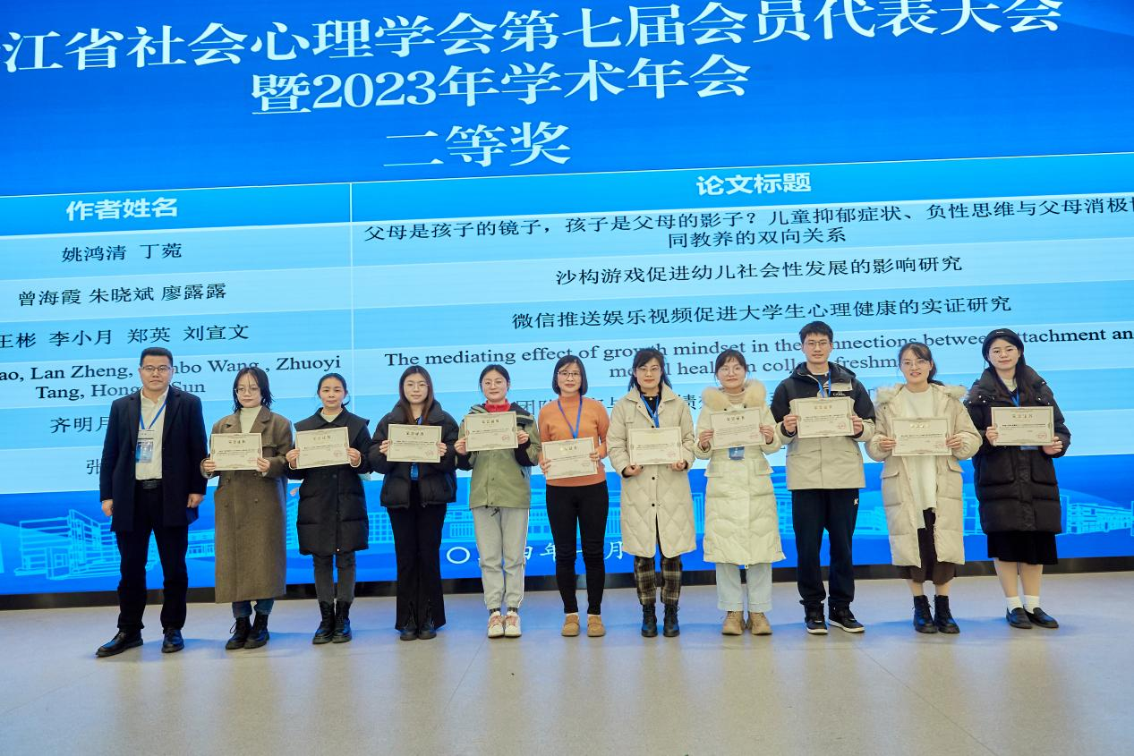 优秀论文颁奖典礼在正阳会议中心报告厅举行,浙江省社会心理学会副会长史金芳主持颁奖典礼。学会组织专家评委从投稿论文中遴选出获奖作品,其中一等奖6项。二等奖12项。三等奖20项。