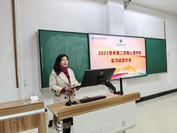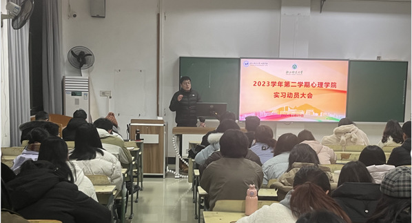 永利23411副院长贾磊向同学们介绍了永利23411实习实践顶层设计和总体安排,并展示了优秀实习案例。他希望同学们响应“加强学生心理健康工作”的国家战略,用所学知识做好实践,报效社会,在实习期间积极开展心理教学和育人活动,引导学生形成健康心理素质,对各实习单位的心理健康工作做出贡献。同时在实习期间要重视人身、财产等安全问题,遵守学校和实习单位的各项制度。