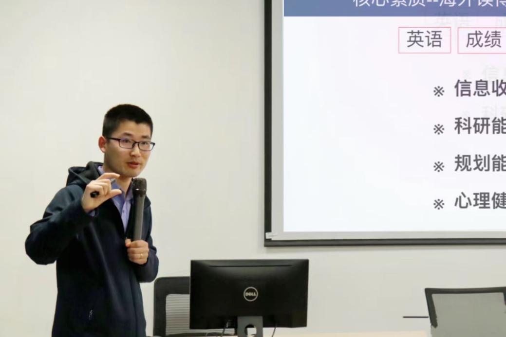 李城林老师向同学们分享了他在德国留学的经验。他向同学们抛出三个问题:“升学为了什么?”“升学动机是什么?”“未来方向是什么?”李老师向同学们介绍了他的留学动机——增长见识,报效祖国,服务社会!同时,李老师指出,信息收集、科研能力、规划能力、心理健康是海外读博最需要的核心素质。