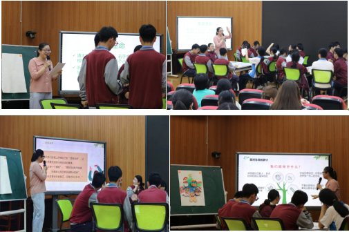 在心理活动教室,韩秋玲老师上了一堂以“我的生命火花”为主题的心理辅导活动公开课。课堂以一个别开生面的暖身游戏拉开了序幕,学生们通过观看“愿望清单”视频,绘制了生命树,并开展小组合作,共同创作了一幅名为“生命火花”的画作。