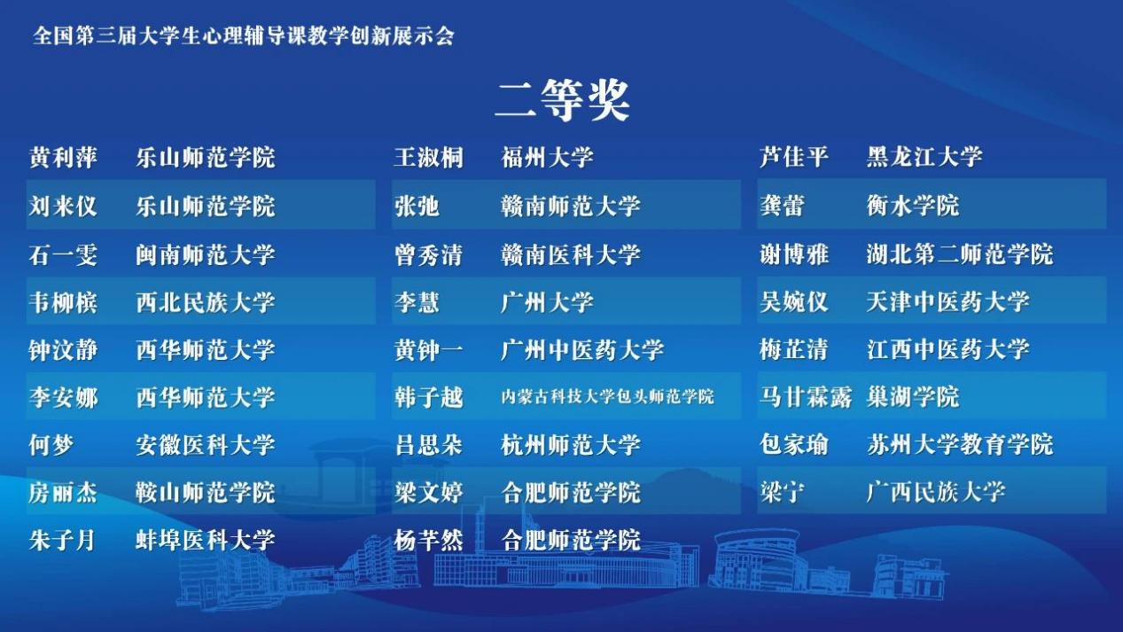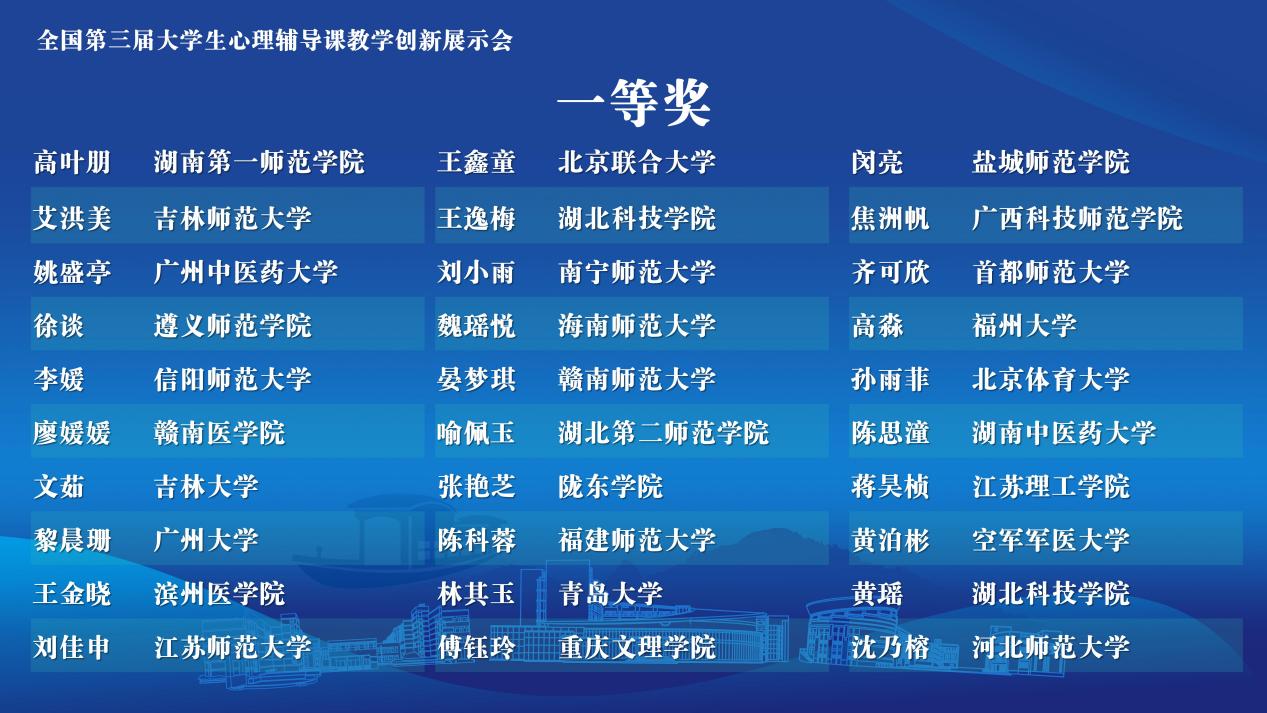 教育部高等学校心理学类专业教学指导委员会副主任委员、中国心理学会理事长苏彦捷教授,教育部高等学校心理学类专业教学指导委员会委员、浙江师范大学校务委员会副主任李伟健教授、浙江省教育厅(省委教育工委)体育卫生与艺术教育处副处长岑超超,全国第三届大学生心理辅导教学创新展示会评委专家、赛事组委会成员、参赛选手和指导教师到场参会。闭幕式由马莉书记主持。