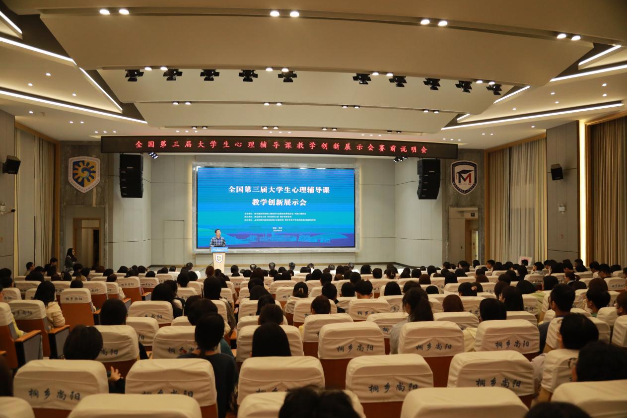 2024年4月25—26日,全国第三届大学生心理辅导课教学创新展示会在浙江桐乡举办。展示会由教育部高等学校心理学类专业教学指导委员会主办,浙江师范大学、华东师范大学、桐乡市教育局承办,上海尚阳外国语学校桐乡实验学校、桐乡市青少年素质教育实践基地学校协办。
