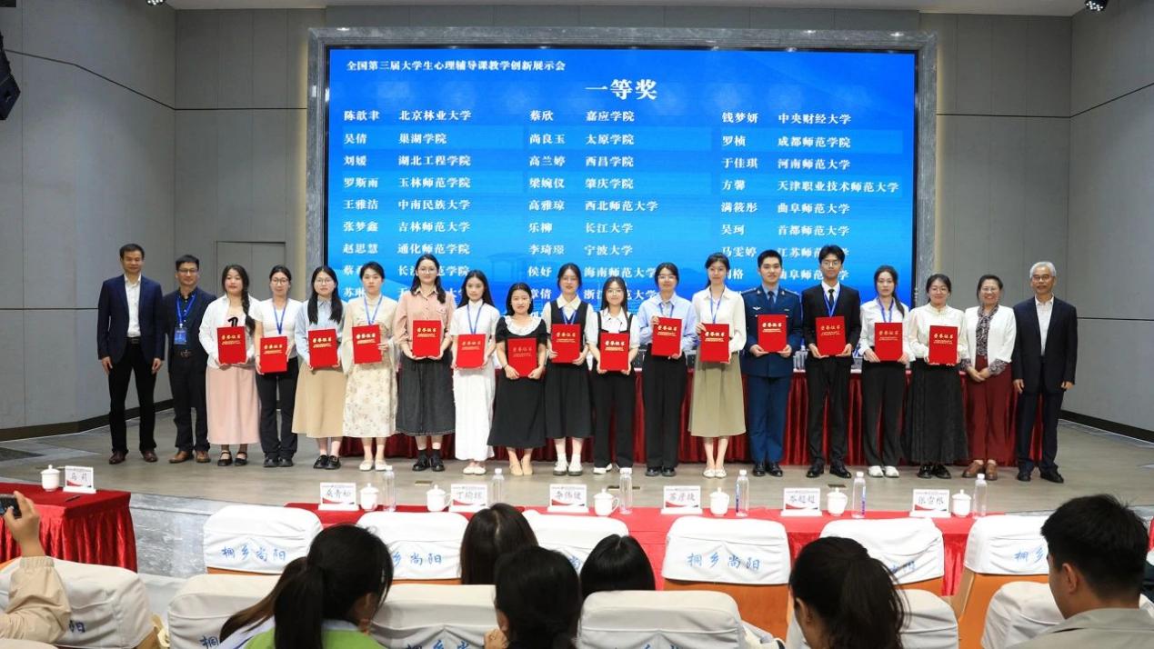 2024年4月25—26日,全国第三届大学生心理辅导课教学创新展示会在浙江桐乡举办。展示会由教育部高等学校心理学类专业教学指导委员会主办,浙江师范大学、华东师范大学、桐乡市教育局承办,上海尚阳外国语学校桐乡实验学校、桐乡市青少年素质教育实践基地学校协办。经过激烈角逐,我院应用心理学211班张银秋同学、212班章倩同学分别获得特等奖和一等奖的好成绩。