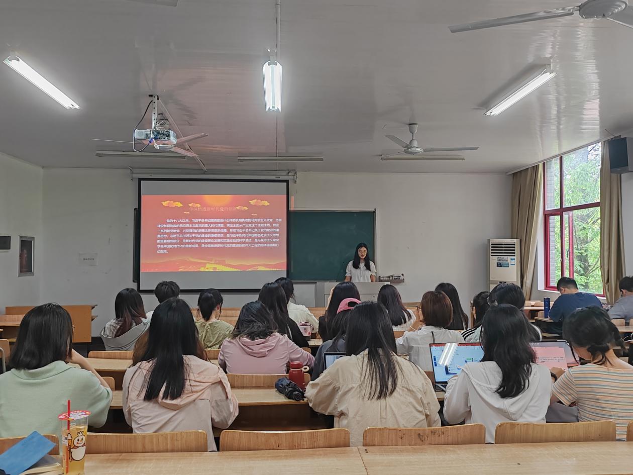 唐心怡同学以浙江师范大学第七次党代会精神为题,从浙师新成就、浙师新愿景、浙师新篇章、浙师新局面四方面展开汇报分享,并表示新征程引领我们团结奋进,新使命激励我们共创未来。