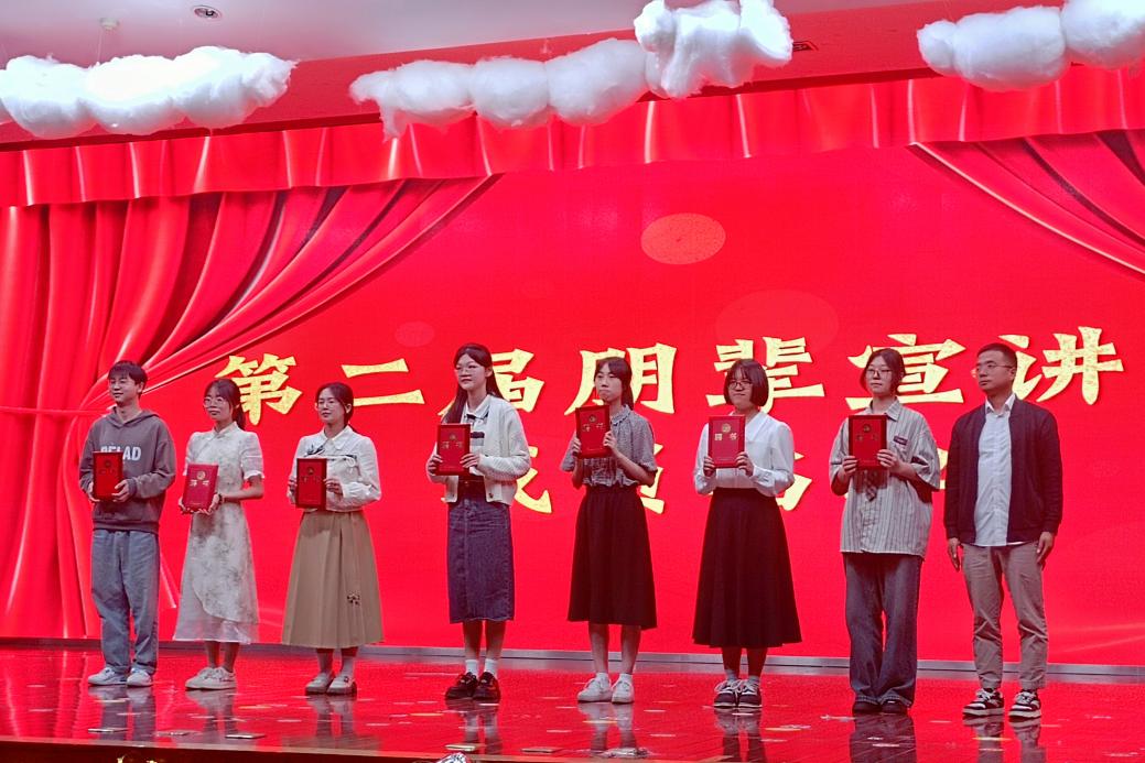 此外,为更好发挥优秀朋辈队伍的示范引领作用,经过材料审核与现场答辩,学校特成立朋辈宣讲团,我院吴苏苏同学成功入选。
