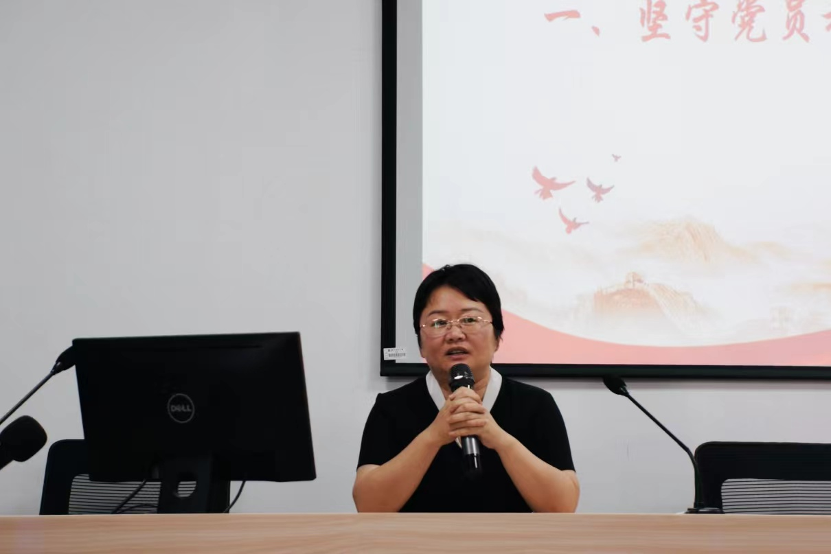 大会伊始,学院党委书记马莉为毕业生党员们带来了题为《挺膺担当强党性,踔厉奋发谱新篇》的主题微党课。首先,马莉书记以党员初心使命勉励广大毕业生党员要积极响应国家心理健康战略规划,增强个人本领,与学院共成长,与时代共奋进。随后,马莉书记向毕业生党员强调党纪学习教育重要性,重点解读了党的六大纪律,她表示在信息多元化的时代,党员要做到是非明辨,自觉学习党的科学理论,强化党性修养。马莉书记还号召广大毕业生党员“一名党员就是一面旗帜”,要锚定理想目标,争做先锋模范,发挥所长,挺膺担当。