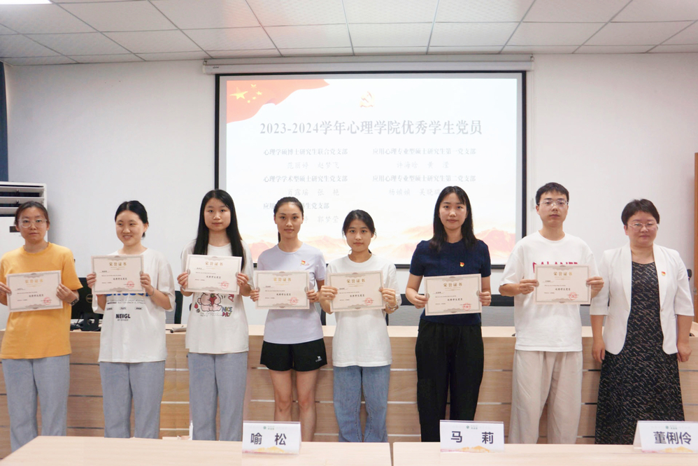 会议最后,马莉书记对全体党员致以诚挚的节日祝福,对受表彰的先进个人和新发展党员表示衷心祝贺,并向全体党员提出三点要求:要守初心,赤诚不渝建伟业;要做先锋,锐意进取担使命;要知敬畏,砺行廉洁正风骨。她鼓励新发展党员以受表彰同学为榜样,用昂扬斗志和饱满热情,高奏心理学子的奋进之歌,为我国心理健康教育事业发展贡献浙师学子的青春力量。