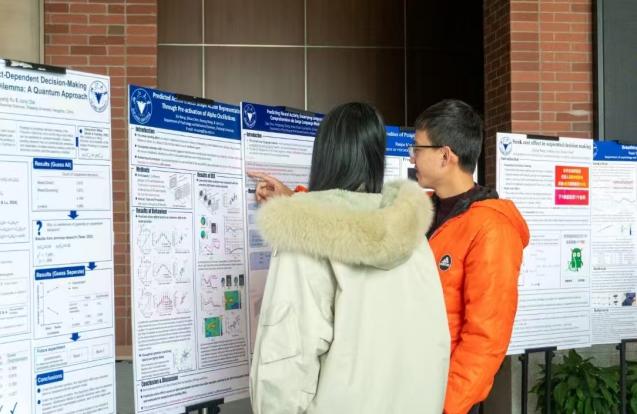 下午的活动迎来了高潮——海报交流指导环节。浙江大学心理学系的张智君、陈辉、周宵、潘亚峰、吴明证等专家亲临现场,认真评阅了两校创新拔尖班同学们制作的学术海报,并对海报进行了细致的点评和指导。同学们认真聆听,积极互动,不仅展示了各自的学术成果,还从专家的反馈中汲取了宝贵的经验。这一环节不仅锻炼了同学们的学术表达能力,也促进了双方在学术思维上的深度碰撞。